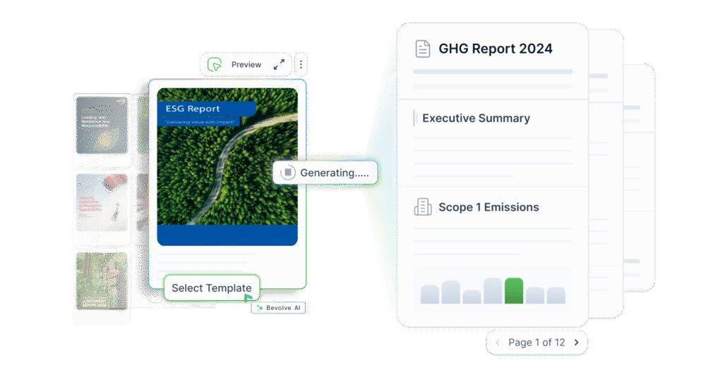 With AI-native tools that organise data, create narratives, and create branded templates, you can quickly and easily create credible, board-ready sustainability reports that are in perfect alignment with your organization’s guidelines and tone.