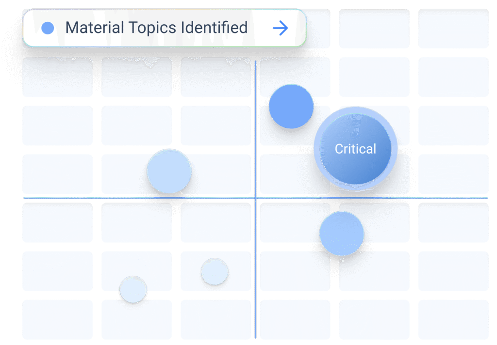 Our built-in materiality tools help you prioritize topics and cross-framework mapping to align KPIs, metrics, and evidence across disclosures and make it decision-ready.