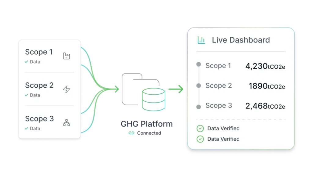 Collecting and managing emissions data across scopes can be complex and error-prone. Our platform directly connects to GHG datasets, ensuring accurate, traceable, and timely Scope 1, 2, and 3 emissions reporting.