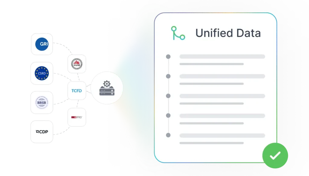 Automated cross-framework mapping that aligns disclosures across multiple frameworks like GRI, CSRD, BRSR, TCFD, IFRS S2, and CDP can eliminate tedious data entry.