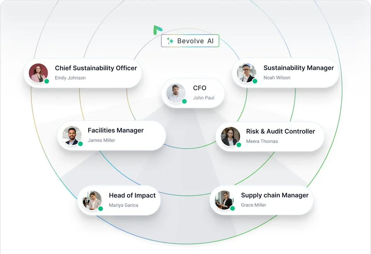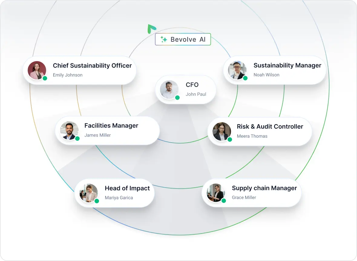 We help you streamline contributors with role-based collaboration, maintain data integrity through automatic GHG integration (Scopes 1–3), and ensure accuracy using cross-framework mapping (GRI, CSRD/ESRS, BRSR, CDP).