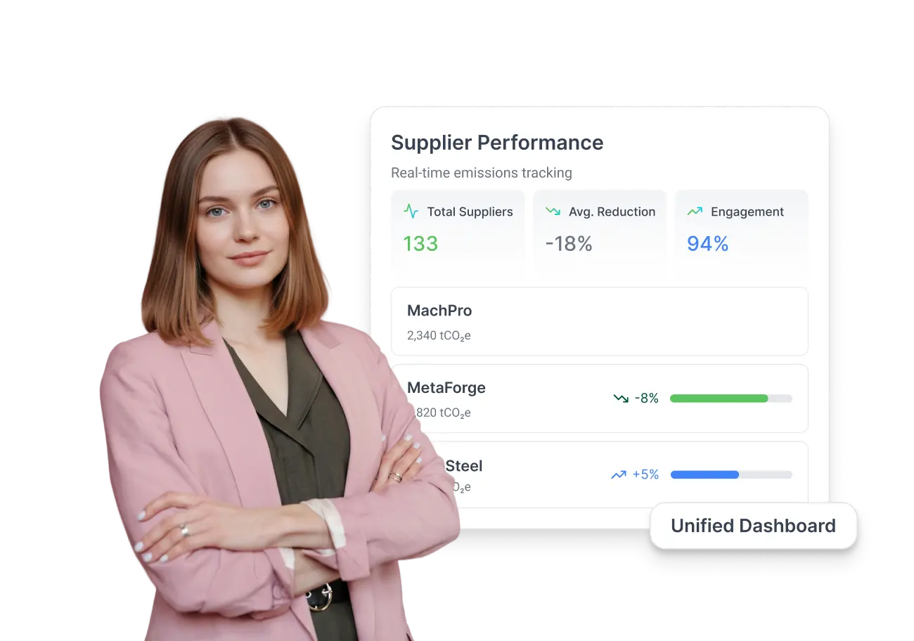 Turn complex supplier and Scope 3 data into clear, decision-ready insights. Our platform automates ESG data collection, streamlines reporting, and delivers actionable visibility across your supply chain.