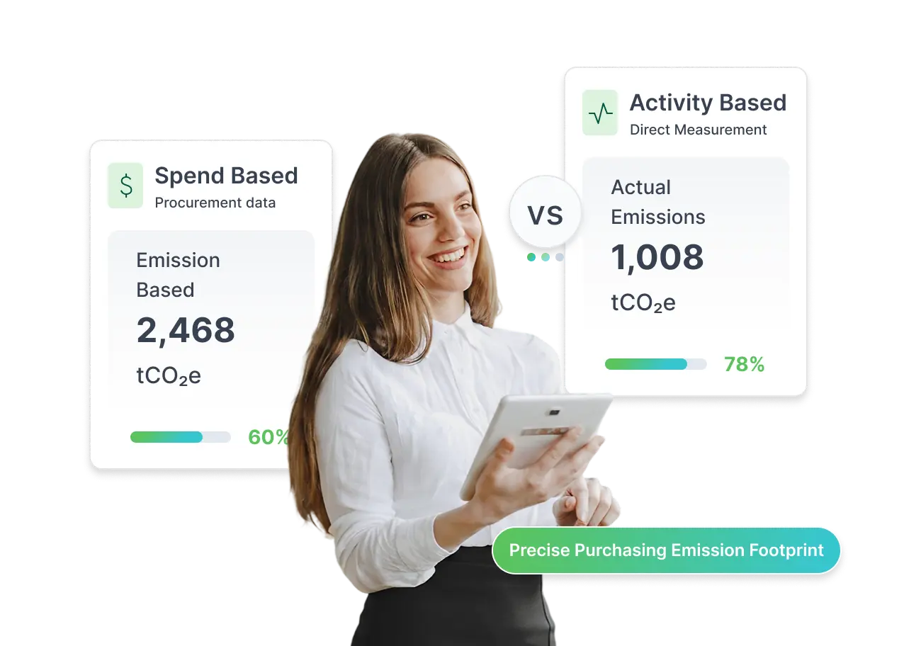 Procurement data acts as a proxy for measuring the emissions. Our platform intuitively connects the supplier spend data and activity based emissions to provide you a precise purchasing emission footprint.